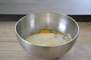 - Dans un autre saladier, mélanger l'oeuf avec le mélange lait et levure.