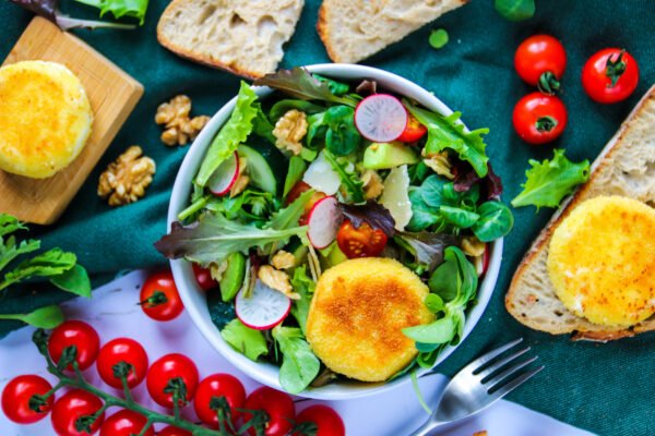 Ce soir je vous partage une recette que j’adore réaliser en été : une délicieuse salade de chèvre chaud ; fait maison ! Nul besoin d’allumer votre four ni de passer des heures en cuisine avec ce repas complet et hyper gourmand 😉