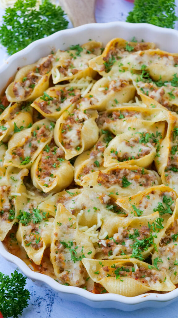 Envie d’un bon petit plat chaud et réconfortant ? Je vous propose ces conchiglionis farcis au boeuf haché qui seront parfaits pour vos prochains dîners de début d’automne 🙂