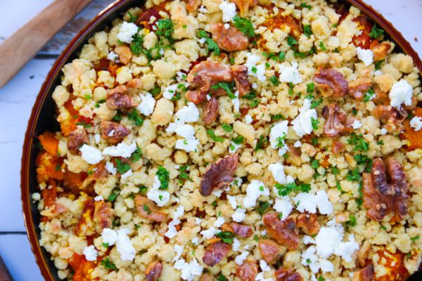 Crumble salé aux légumes d’hiver, feta et noix