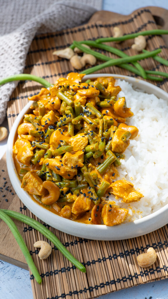 Bonne rentrée à tous ! 🙂 Au programme ces prochains jours : des idées de recettes à la fois faciles, rapides et réconfortantes pour affronter la fin des vacances ! Tout comme ce curry de poulet, haricots verts et noix de cajou qui coche toutes les cases 🙂