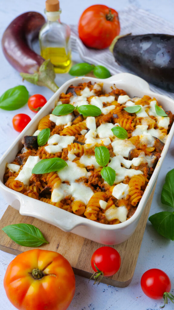 L’été se termine doucement… alors profitons des derniers légumes de cette saison avec un plat à la fois facile, réconfortant et équilibré. Ce gratin largement inspiré des pastas alla norma sera parfait pour une transition été/automne tout en douceur et gourmandise 🙂