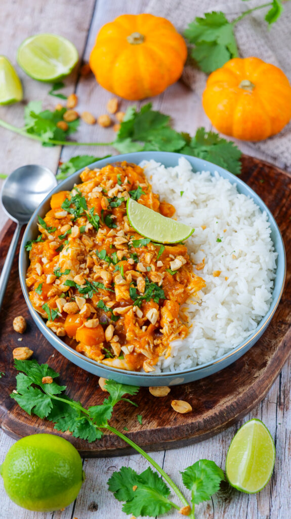 Ce soir je vous propose un délicieux mafé au poulet et à la courge butternut : un plat à la fois rapide à préparer, facile et plein de saveurs ! 🙂