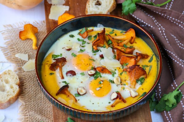 Oeufs au four faciles aux girolles, butternut et parmesan