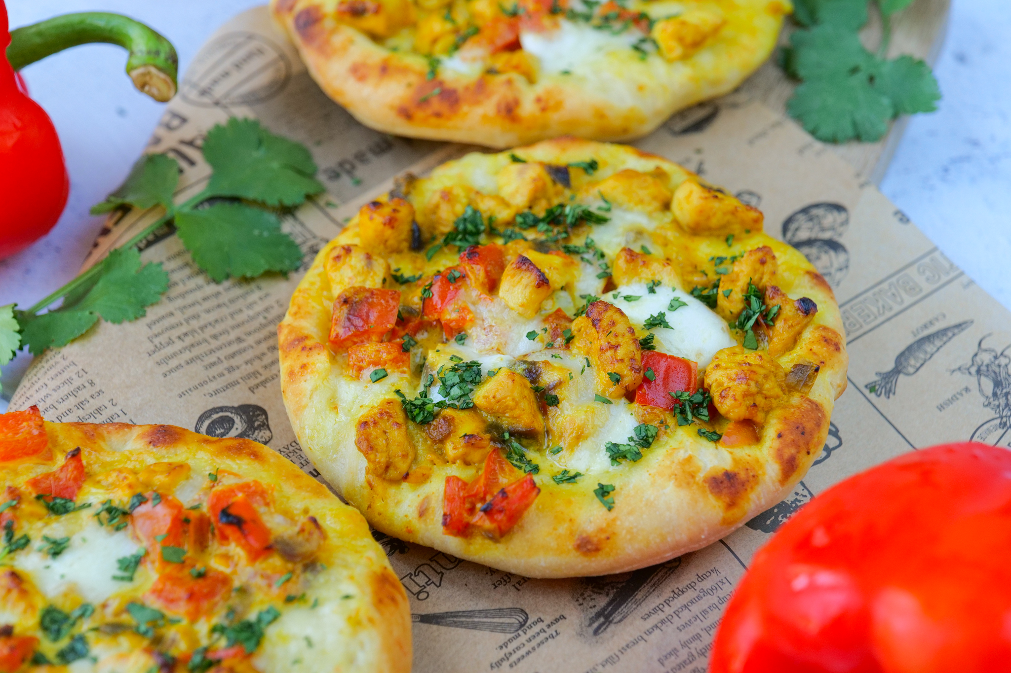 Petits pains farcis au poulet, poivron et curry