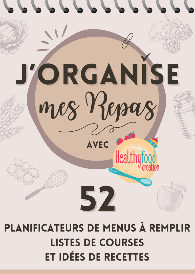 Je vous présente mon organisateur de repas ! 1 an de planificateurs de menus avec listes de courses à remplir, ainsi qu’une idée de recette par semaine (issues du site) pour :