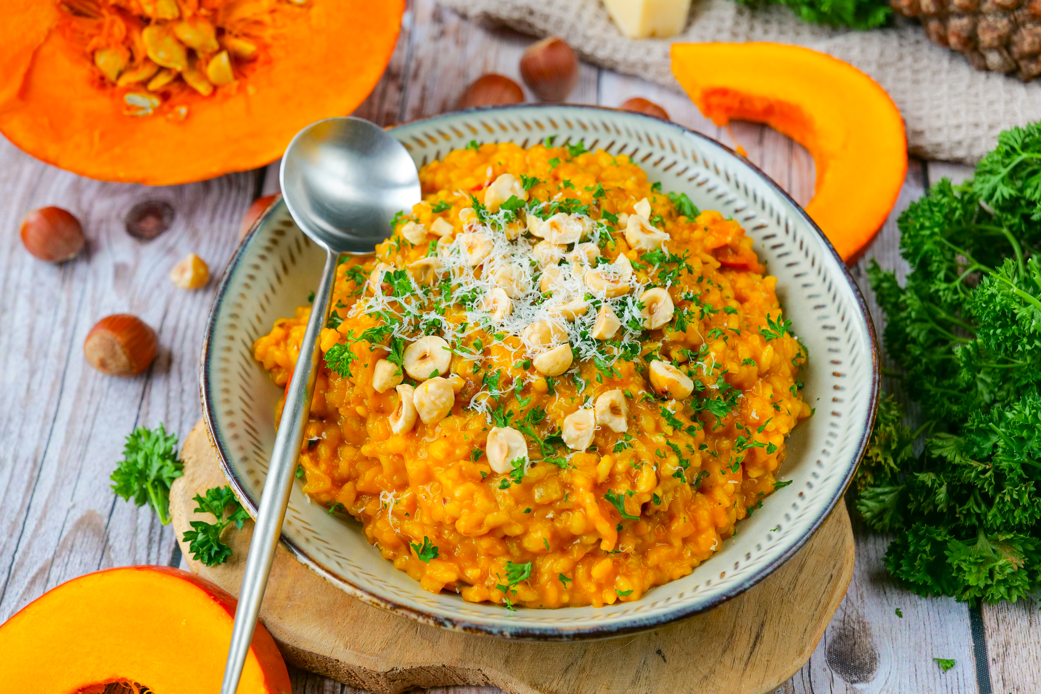 La dernière recette d’automne avant de passer à une recette de Noël par jour dès demain 😀 ! Quoi de mieux qu’un bon risotto crémeux et réconfortant pour se réchauffer ? Cette version au potimarron est réalisable à la poêle mais aussi à l’air fryer si vous en possédez un 🙂