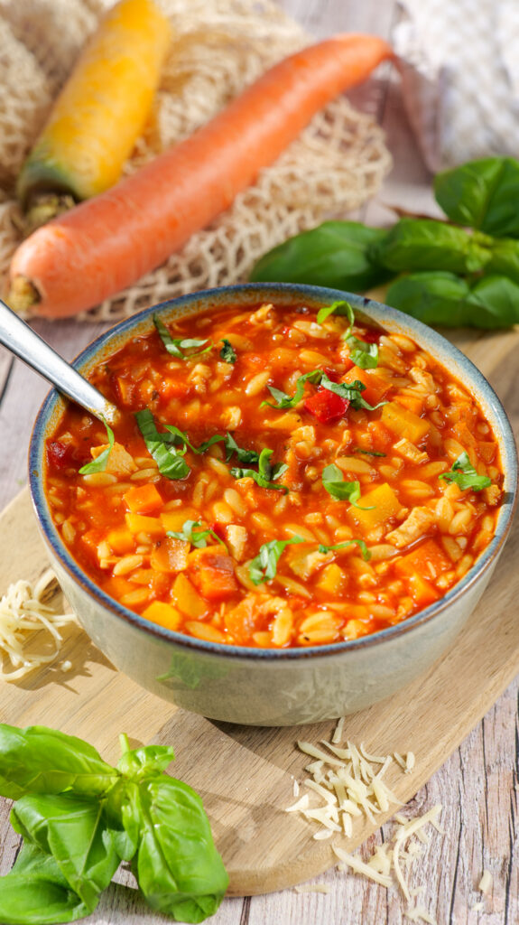 Pour se réchauffer, rien de mieux qu’une bonne soupe de pâtes savoureuse et réconfortante ! Je vous propose aujourd’hui cette soupe d’orzo relevée à la sauce arrabiata, au poulet et aux carottes ! Un plat complet, équilibré, rapide et facile ; que demander de plus ? 😉