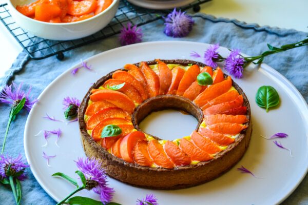 Qui dit été dit tartes en folies ! J’adore les tartes aux fruits : si fraîches et gourmandes. Après la tarte aux myrtilles voici l’autre star du mois de juillet : la tarte aux abricots, délicatement acidulée dans une crème pâtissière onctueuse… rien de te pour un dessert d’été 🙂 régalez-vous bien 🙂