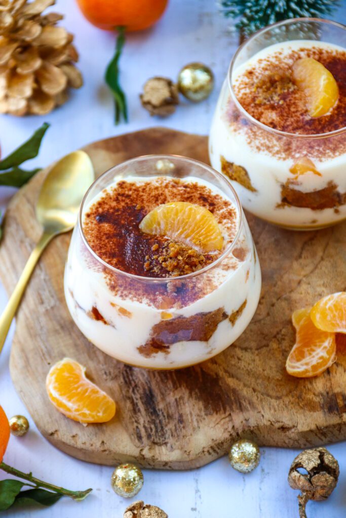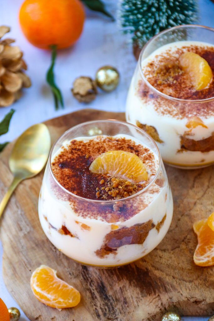 Une autre idée de dessert de Noël pour changer des bûches et terminer votre réveillon sur une note légère et gourmande : des petits tiramisu individuels sans mascarpone aux clémentines glacées… un vrai délice ultra simple à faire 😉