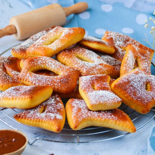 Pour un vrai effet friture : a la sortie du four, chauffer une poêle avec un fond d'huile de coco ou de cuisson puis faire revenir les bugnes quelques secondes de chaque côté à feu moyen.