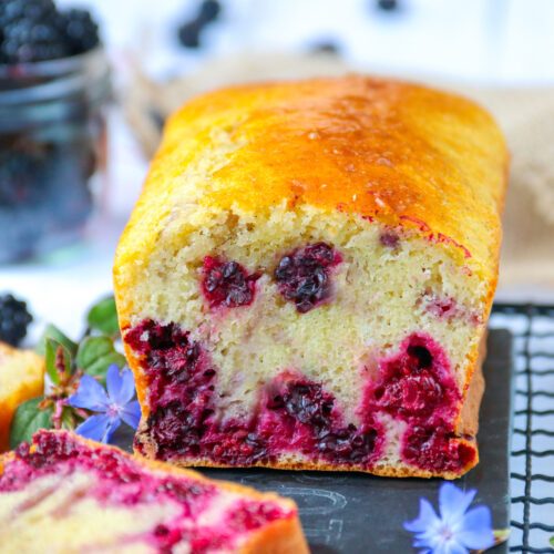 Ajouter le fromage blanc, la demie gousse de vanille vidée ainsi que l’huile d’olive. Mélanger, puis ajouter par la farine et la levure chimique. Mélanger de nouveau. Enfin, terminer par les mûres en prenant soin de mélanger délicatement.