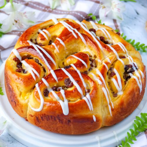 Après ce temps de pause, battre un jaune d'oeuf puis le badigeonner sur la brioche. Enfourner pendant 17 à 20 minutes dans un four préchauffé à 180° (chaleur traditionnelle). Laisser totalement refroidir avant d'ajouter la crème sur le topping et déguster.