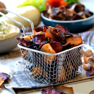 Enfourner pendant 30 - 35 min (bien surveiller la cuisson). Saler les chips immédiatement à la sortie du four et déguster dès qu'elles seront refroidies