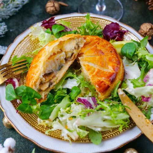 Déposer au centre de 4 cercles : le mélange échalotes-champignons, une cuillère à soupe de béchamel et une noix de Saint Jacques. Recouvrir d'un peu de béchamel.