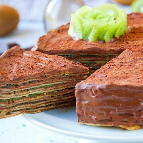Gâteau de crêpes aux kiwis de France et au chocolat