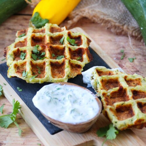 Chauffer et huiler un gaufrier. Une fois celui-ci chaud, déposer de petits cercles de pâte puis les cuire pendant environ 3 à 4 minutes.