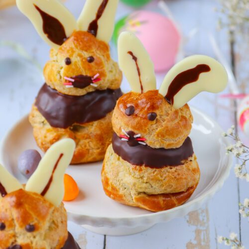 Remplir une poche à douille de la pâte à choux, déposer une feuille de papier cuisson sur la plaque du four puis réaliser 4 choux de taille moyenne et 4 plus petits. Enfourner pendant 30 à 35 minutes. À la fin de la cuisson, laisser totalement refroidir et réserver.