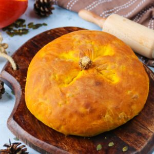 Après ce temps de pousse, dégazer la pâte. Fariner le plan de travail façonner la pâte en boule. La déposer ensuite sur la plaque du four chemisée de papier cuisson.