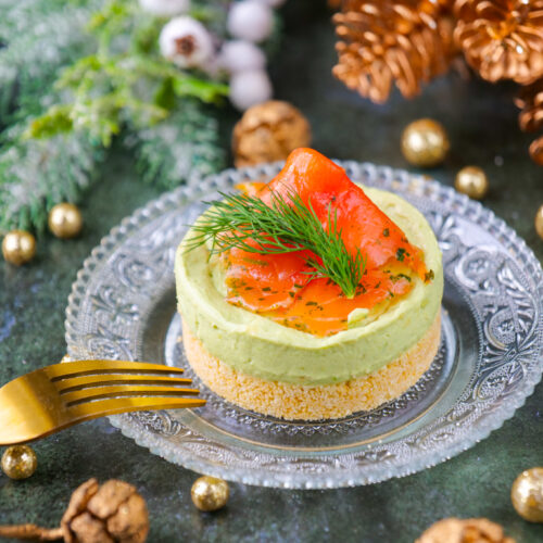 Au dernier moment, retirer délicatement les cercles et placer une tranche de truite fumée et un brin d'aneth sur chaque cheese cake. Peut être préparer la veille d'un repas et démoulé au dernier moment !