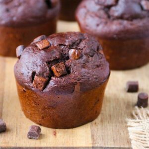 Déposer la pâte dans des moules à muffins en les remplissant aux 3/4. Enfourner pendant 30 à 35 minutes. A la fin de la cuisson, laisser refroidir une vingtaine de minutes avant de démouler.