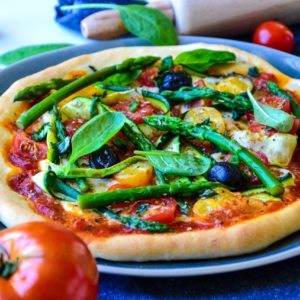 Garnir la pizza de sauce tomate et fromage uniquement et enfourner pendant 8 minutes. Ajouter ensuite les légumes et autres éléments de votre pizza (légumes coupés finements etc) au dernier moment avant dégustation.