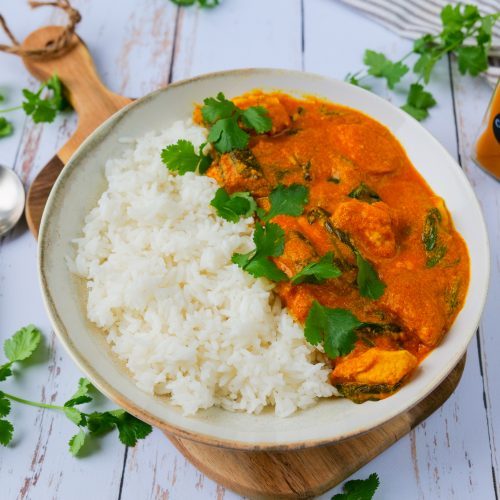 Servir le riz dans des assiettes creuses avec le poulet et de la coriandre fraîche ! Conservation : au réfrigérateur pendant 3 jours.