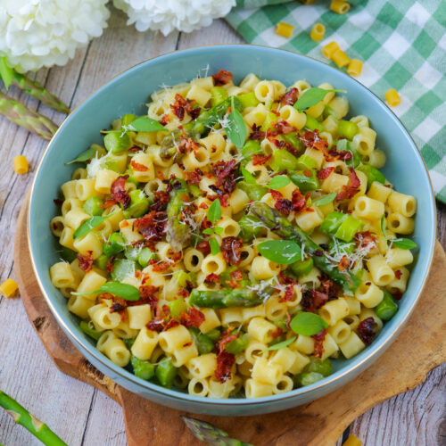 Une fois le bouillon totalement absorbé, ajouter le Parmesan râpé et mélanger. Servir dans des assiettes creuses puis ajouter le bacon grillé coupé en petits morceaux ainsi que du basilic ciselé !