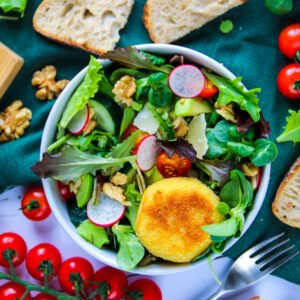 Pendant ce temps, préparer la salade composée et faire griller les tranches de pain. Il ne restera plus qu'a déguster chaud ou tiède !