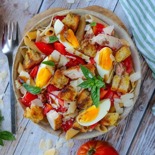 Ajouter des copeaux de Parmesan, du basilic frais et du velours balsamique avant de déguster !