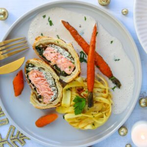 Préchauffer le four à 180°. (Chaleur traditionnelle). Retirer la peau et les arrêtes du saumon si nécessaire.