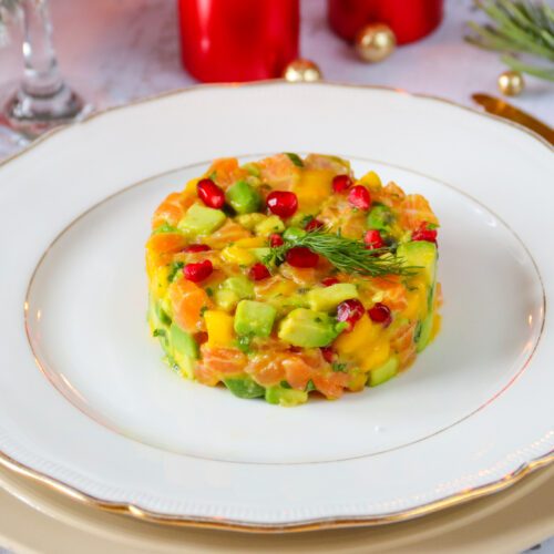 Quelques minutes avant de servir, poser un cercle à pâtisserie sur une assiette puis le remplir du tartare en pressant avec le dos de la cuillère. Soulever délicatement le cercle et servir :)
