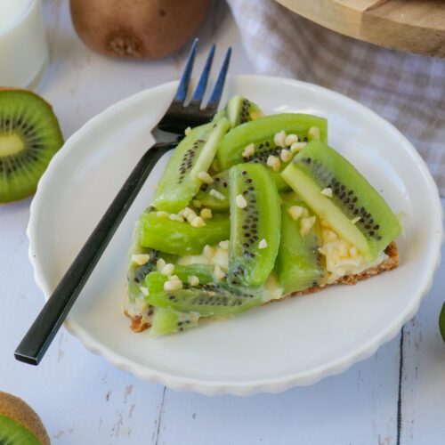 Éplucher et couper les kiwis de France en quartiers puis les ajouter sur la tarte. Parsemer d'amandes concassées et réserver au frais. Conservation : au réfrigérateur pendant 3 jours, préparation et assemblage la veille possible 🙂