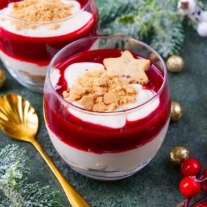 Dans de petites verrines, déposer une couche de biscuits concassés, une couche de crème à la vanille et un peu de coulis de framboises. Terminer par une cuillère de crème vanille et de biscuits concassés ainsi qu'un biscuit entier pour la décoration ! Joyeuses fêtes :)